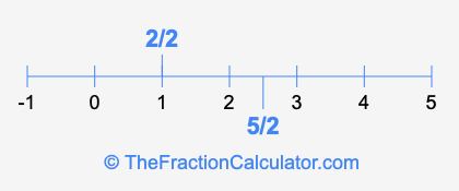 We'll start by presenting the illustration below that shows you where 2/2 and 5/2 are positioned on a number line. This will help you fully understand and visualize our calculations.