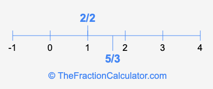 We'll start by presenting the illustration below that shows you where 2/2 and 5/3 are positioned on a number line. This will help you fully understand and visualize our calculations.