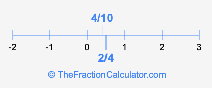 We'll start by presenting the illustration below that shows you where 2/4 and 4/10 are positioned on a number line. This will help you fully understand and visualize our calculations.