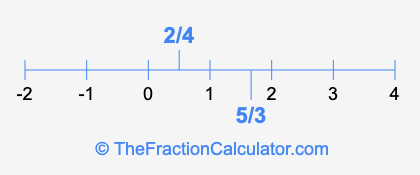 We'll start by presenting the illustration below that shows you where 2/4 and 5/3 are positioned on a number line. This will help you fully understand and visualize our calculations.