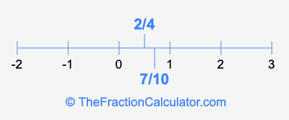 We'll start by presenting the illustration below that shows you where 2/4 and 7/10 are positioned on a number line. This will help you fully understand and visualize our calculations.