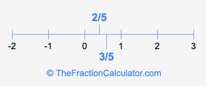 We'll start by presenting the illustration below that shows you where 2/5 and 3/5 are positioned on a number line. This will help you fully understand and visualize our calculations.