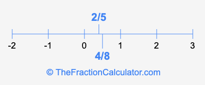 We'll start by presenting the illustration below that shows you where 2/5 and 4/8 are positioned on a number line. This will help you fully understand and visualize our calculations.