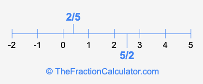 We'll start by presenting the illustration below that shows you where 2/5 and 5/2 are positioned on a number line. This will help you fully understand and visualize our calculations.