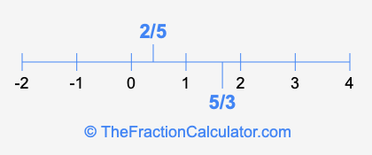 We'll start by presenting the illustration below that shows you where 2/5 and 5/3 are positioned on a number line. This will help you fully understand and visualize our calculations.