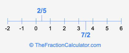 We'll start by presenting the illustration below that shows you where 2/5 and 7/2 are positioned on a number line. This will help you fully understand and visualize our calculations.