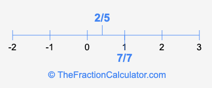 We'll start by presenting the illustration below that shows you where 2/5 and 7/7 are positioned on a number line. This will help you fully understand and visualize our calculations.