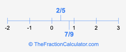 We'll start by presenting the illustration below that shows you where 2/5 and 7/9 are positioned on a number line. This will help you fully understand and visualize our calculations.