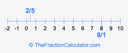We'll start by presenting the illustration below that shows you where 2/5 and 8/1 are positioned on a number line. This will help you fully understand and visualize our calculations.