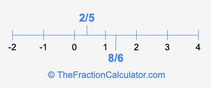 We'll start by presenting the illustration below that shows you where 2/5 and 8/6 are positioned on a number line. This will help you fully understand and visualize our calculations.
