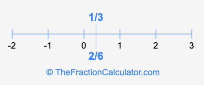 We'll start by presenting the illustration below that shows you where 2/6 and 1/3 are positioned on a number line. This will help you fully understand and visualize our calculations.