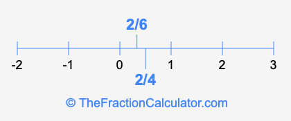 We'll start by presenting the illustration below that shows you where 2/6 and 2/4 are positioned on a number line. This will help you fully understand and visualize our calculations.