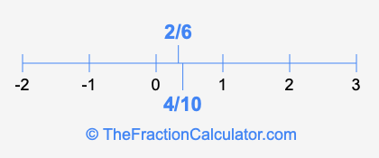 We'll start by presenting the illustration below that shows you where 2/6 and 4/10 are positioned on a number line. This will help you fully understand and visualize our calculations.