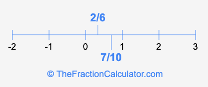 We'll start by presenting the illustration below that shows you where 2/6 and 7/10 are positioned on a number line. This will help you fully understand and visualize our calculations.
