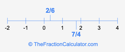 We'll start by presenting the illustration below that shows you where 2/6 and 7/4 are positioned on a number line. This will help you fully understand and visualize our calculations.