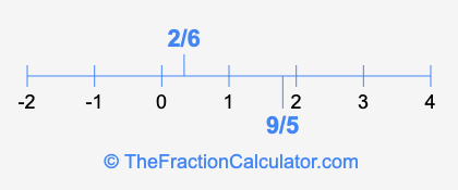We'll start by presenting the illustration below that shows you where 2/6 and 9/5 are positioned on a number line. This will help you fully understand and visualize our calculations.