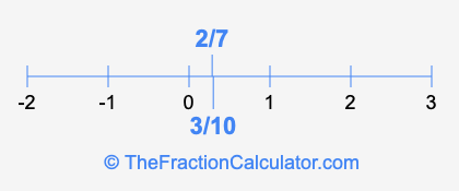 We'll start by presenting the illustration below that shows you where 2/7 and 3/10 are positioned on a number line. This will help you fully understand and visualize our calculations.