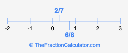 We'll start by presenting the illustration below that shows you where 2/7 and 6/8 are positioned on a number line. This will help you fully understand and visualize our calculations.