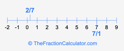 We'll start by presenting the illustration below that shows you where 2/7 and 7/1 are positioned on a number line. This will help you fully understand and visualize our calculations.