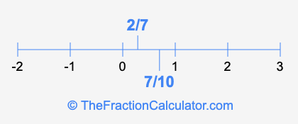 We'll start by presenting the illustration below that shows you where 2/7 and 7/10 are positioned on a number line. This will help you fully understand and visualize our calculations.
