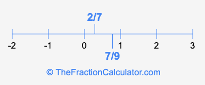We'll start by presenting the illustration below that shows you where 2/7 and 7/9 are positioned on a number line. This will help you fully understand and visualize our calculations.