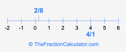 We'll start by presenting the illustration below that shows you where 2/8 and 4/1 are positioned on a number line. This will help you fully understand and visualize our calculations.
