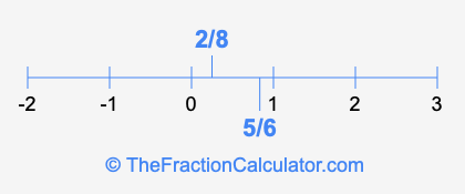 We'll start by presenting the illustration below that shows you where 2/8 and 5/6 are positioned on a number line. This will help you fully understand and visualize our calculations.