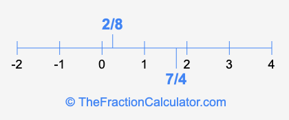 We'll start by presenting the illustration below that shows you where 2/8 and 7/4 are positioned on a number line. This will help you fully understand and visualize our calculations.