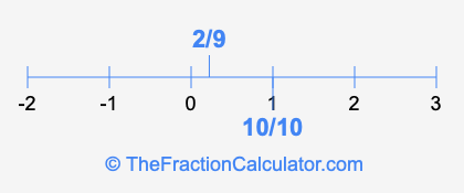We'll start by presenting the illustration below that shows you where 2/9 and 10/10 are positioned on a number line. This will help you fully understand and visualize our calculations.
