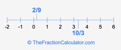 We'll start by presenting the illustration below that shows you where 2/9 and 10/3 are positioned on a number line. This will help you fully understand and visualize our calculations.
