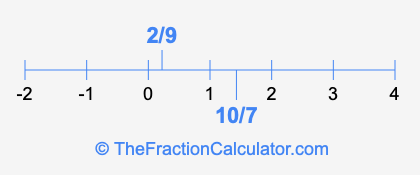 We'll start by presenting the illustration below that shows you where 2/9 and 10/7 are positioned on a number line. This will help you fully understand and visualize our calculations.