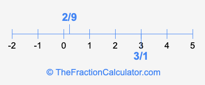 We'll start by presenting the illustration below that shows you where 2/9 and 3/1 are positioned on a number line. This will help you fully understand and visualize our calculations.