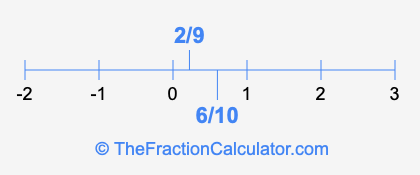 We'll start by presenting the illustration below that shows you where 2/9 and 6/10 are positioned on a number line. This will help you fully understand and visualize our calculations.