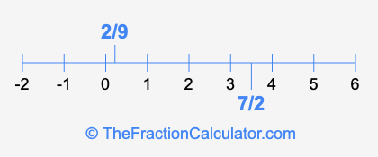 We'll start by presenting the illustration below that shows you where 2/9 and 7/2 are positioned on a number line. This will help you fully understand and visualize our calculations.