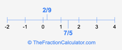 We'll start by presenting the illustration below that shows you where 2/9 and 7/5 are positioned on a number line. This will help you fully understand and visualize our calculations.