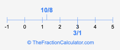 We'll start by presenting the illustration below that shows you where 3/1 and 10/8 are positioned on a number line. This will help you fully understand and visualize our calculations.