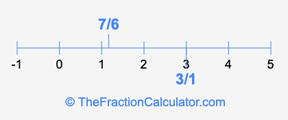 We'll start by presenting the illustration below that shows you where 3/1 and 7/6 are positioned on a number line. This will help you fully understand and visualize our calculations.