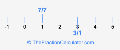 We'll start by presenting the illustration below that shows you where 3/1 and 7/7 are positioned on a number line. This will help you fully understand and visualize our calculations.