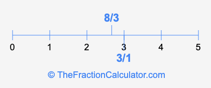 We'll start by presenting the illustration below that shows you where 3/1 and 8/3 are positioned on a number line. This will help you fully understand and visualize our calculations.
