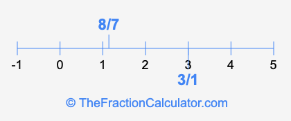 We'll start by presenting the illustration below that shows you where 3/1 and 8/7 are positioned on a number line. This will help you fully understand and visualize our calculations.