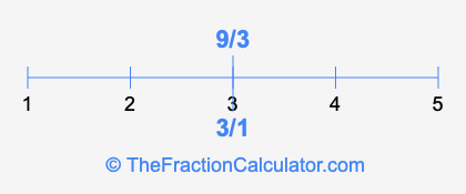 We'll start by presenting the illustration below that shows you where 3/1 and 9/3 are positioned on a number line. This will help you fully understand and visualize our calculations.