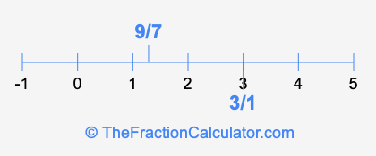 We'll start by presenting the illustration below that shows you where 3/1 and 9/7 are positioned on a number line. This will help you fully understand and visualize our calculations.