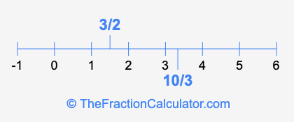 We'll start by presenting the illustration below that shows you where 3/2 and 10/3 are positioned on a number line. This will help you fully understand and visualize our calculations.