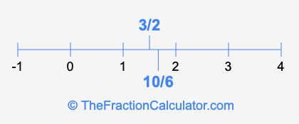 We'll start by presenting the illustration below that shows you where 3/2 and 10/6 are positioned on a number line. This will help you fully understand and visualize our calculations.