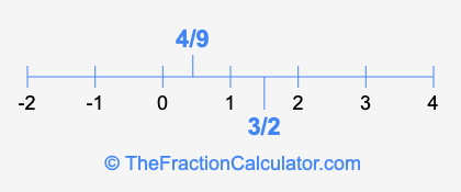 We'll start by presenting the illustration below that shows you where 3/2 and 4/9 are positioned on a number line. This will help you fully understand and visualize our calculations.