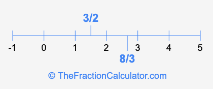 We'll start by presenting the illustration below that shows you where 3/2 and 8/3 are positioned on a number line. This will help you fully understand and visualize our calculations.