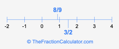 We'll start by presenting the illustration below that shows you where 3/2 and 8/9 are positioned on a number line. This will help you fully understand and visualize our calculations.