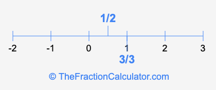 We'll start by presenting the illustration below that shows you where 3/3 and 1/2 are positioned on a number line. This will help you fully understand and visualize our calculations.