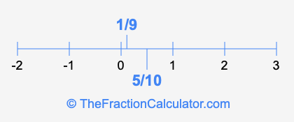 We'll start by presenting the illustration below that shows you where 5/10 and 1/9 are positioned on a number line. This will help you fully understand and visualize our calculations.