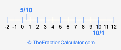 We'll start by presenting the illustration below that shows you where 5/10 and 10/1 are positioned on a number line. This will help you fully understand and visualize our calculations.